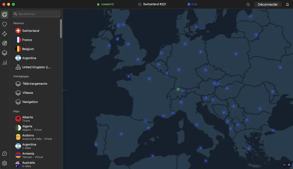 L’interfaccia utente è pulita e intuitiva su tutte le piattaforme, dai computer desktop ai telefoni cellulari. Durante i test, abbiamo apprezzato la mappa del mondo interattiva che consente di connettersi a un server con un solo clic. Con la possibilità di connettere fino a dieci dispositivi contemporaneamente, NordVPN è una scelta eccellente per singoli utenti e intere famiglie che desiderano proteggere tutti i loro dispositivi.